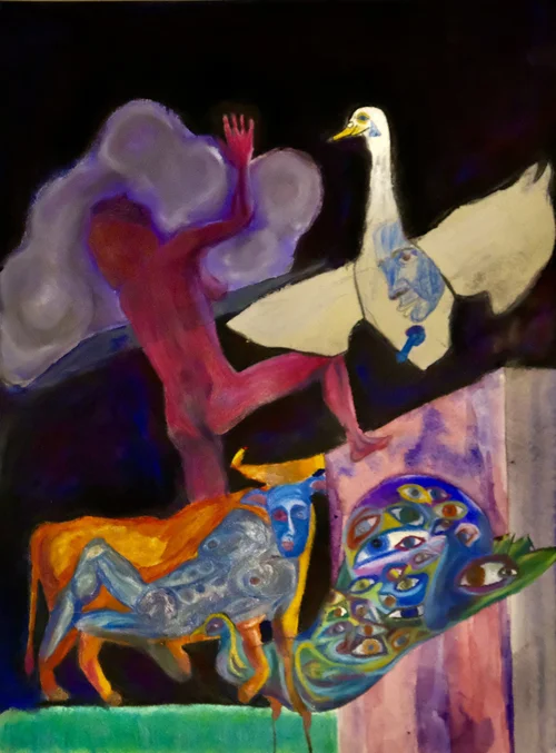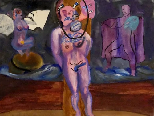 Watercolor, Oil pastel, Soft Pastel, colored pencil on paper